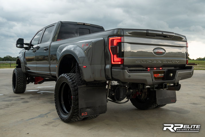 6” Fabtech lift with 4.0 coil overs and fox shocks in the rear 24” American force wheels 37” Toyo MT’s Paint matched and red flake powder coat