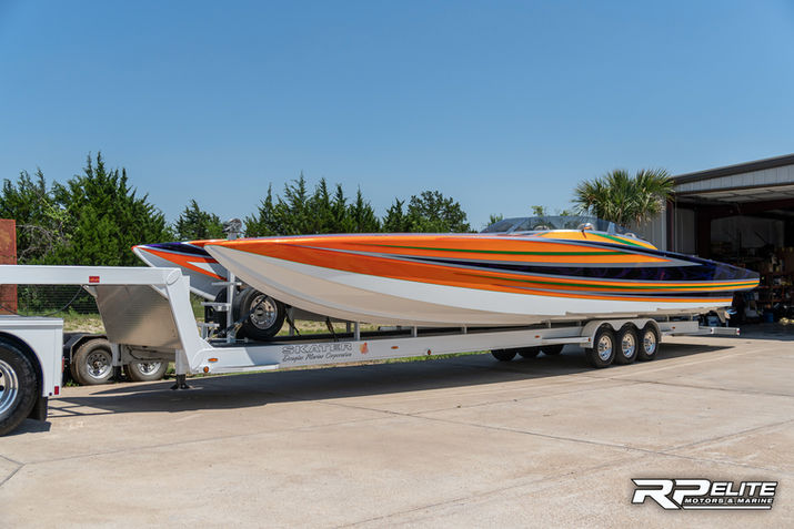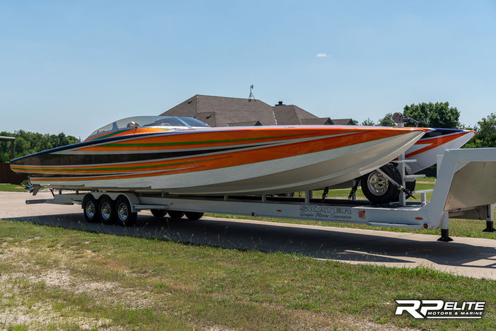 2013 Skater 46XL Powered by twin 588 Pro Marine engines pumping out 1,300hp each, Coan 2 speed transmissions and Mercury Racing number 6 outdrives with a 1.35 gear ratio. Brand new Mercury Racing 16 3/4x38x18 propellers, lifting eyes and one of a kind exterior paint makes this beautiful Skater stand out at all poker runs. Engines just received a full service including a valve lash, along with a service of the outdrives as well. The interior of this beast includes dual helm steering, David Clark intercom system and a Garmin 5212. This beautiful Skater sits on a 2013 Skater gooseneck flat trailer, New wheel bearings and seals were just installed and the alcoa wheels make this trailer look sweet. This beautiful ride has been very well maintained and it shows, it is a must see in person. Summer is here and this Skater 46XL is ready!