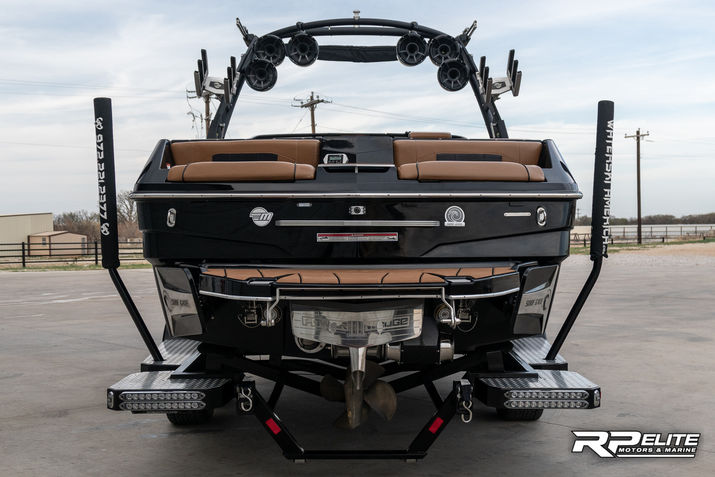 Deck Base (Ebony) Upgrade, Hull Base (Ebony) Upgrade, Interior Main (Sepia Brown) Upgrade, Interior Base (Sepia Brown) Upgrade, Dash Top Stitch (Sepia Brown) Upgrade, Malibu Monsoon 555 6.2L LSA, 170a Alternator, Exhaust - Surf Pipe, Standard - 17 x 17 - 2805, Docking Lights (Pair, LEDs), Sound System 25 LSV Pack, Transom Remote, Rack - PTM Clamping Spinner Slide Off (2), Tower Hoop & Arch - Black, Ballast HI FLO - Bow Malibu Launch System, Surf Gate w/ Malibu Surfband, Wedge - Power Wedge III, Soft Grip - Nonskid (Complete Deck Kit) Ebony / Ebony, Driver Seat Swivel and Slide, Interior Flip Down Entry/Exit Steps - Port & Stbd, Soft Grip - Flooring - Sepia Brown / Ebony, Power Lift Helm Seat, Sport Dash w/ Rotary VDC 4-Way Joystick and Wireless Charging Stations, Wakeview Bench Seat w/ Integrated Table, Wideview Backup Camera, Battery Charger (US), Pull Up Cleats (3 Pair), Flip Down Step Swimboard, Malibu Stern Turn, CS Bimini Top - Gen II Surf, CS Boat Cover w/ Taps 2 and Swimboard Cover, Plug N Play Ballast, Dual Batteries, Trailer Options Malibu, Trailer Wheel Upgrade, Progressive Gel Scheme, Custom Stereo 2 Pair Rev 10's - 2 Amps Subwoofer, Tinted Windows