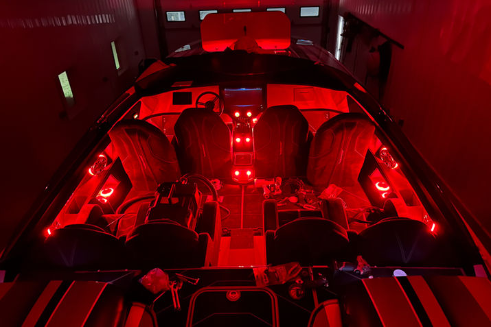 If you’re looking for a sporty catamaran that can still take on the big water, this is the boat! Mercury Racing 700s are a desired engine and this boat runs well into the 130mph range.