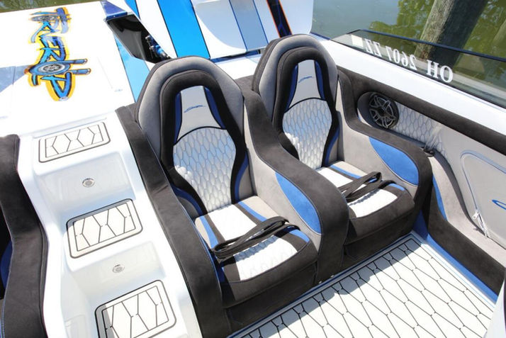 Custom bucket seats and three- or- four- person wrap around bench seat