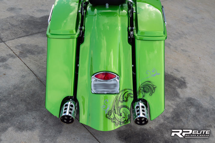 2014 Harley Street Glide • Cams, exhaust & tune • 21” front wheel • Aftermarket bags and fenders • 14” bars • Custom paint